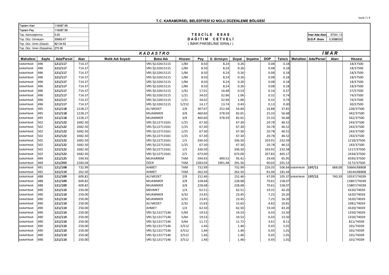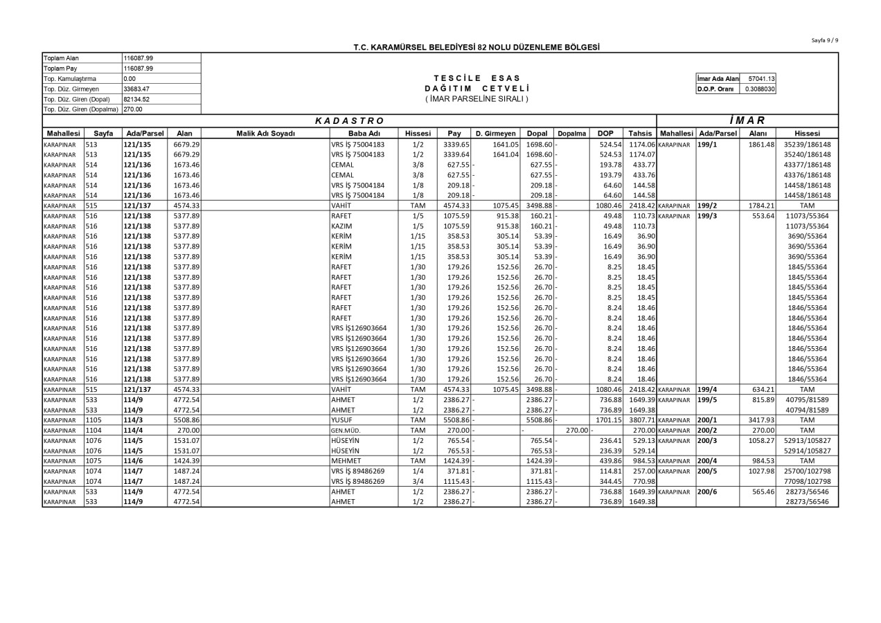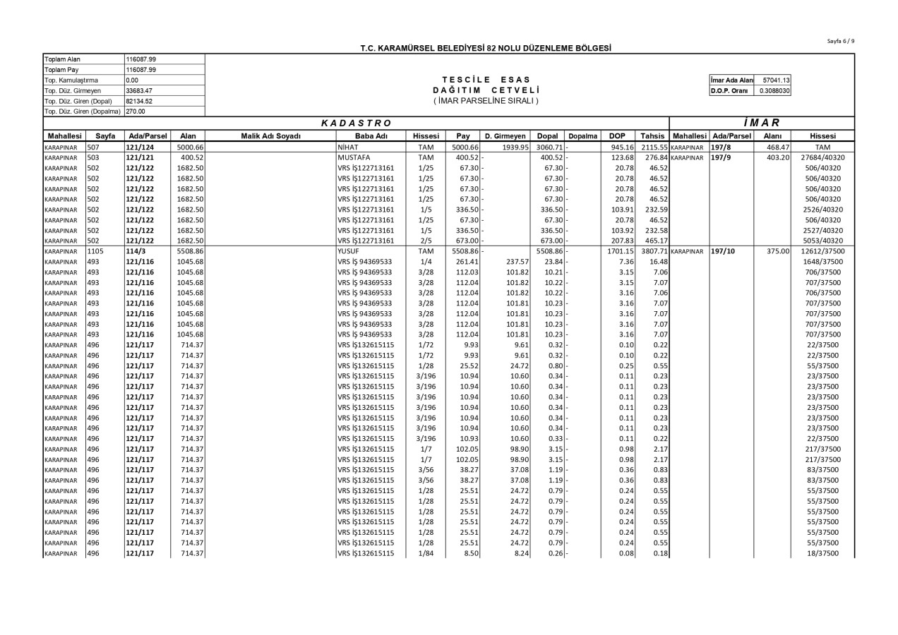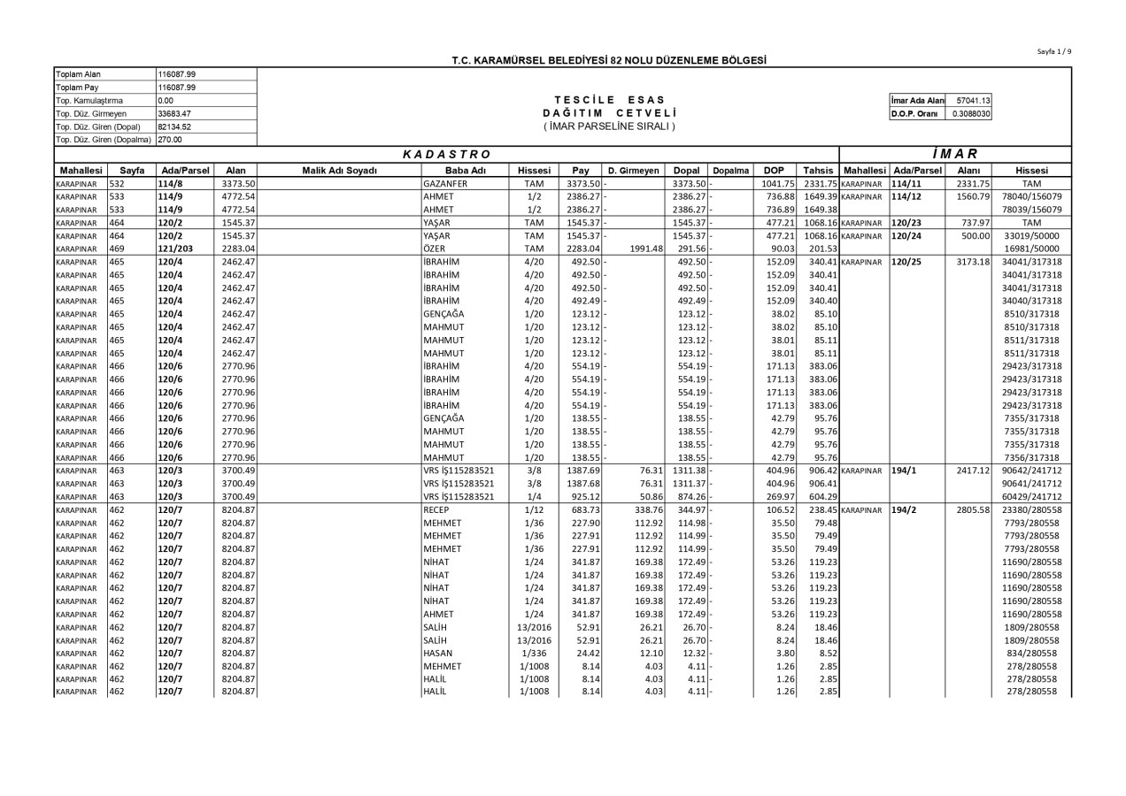 İmar Uygulaması İlanı. ( Karapınar Mah. 82. Bölge )