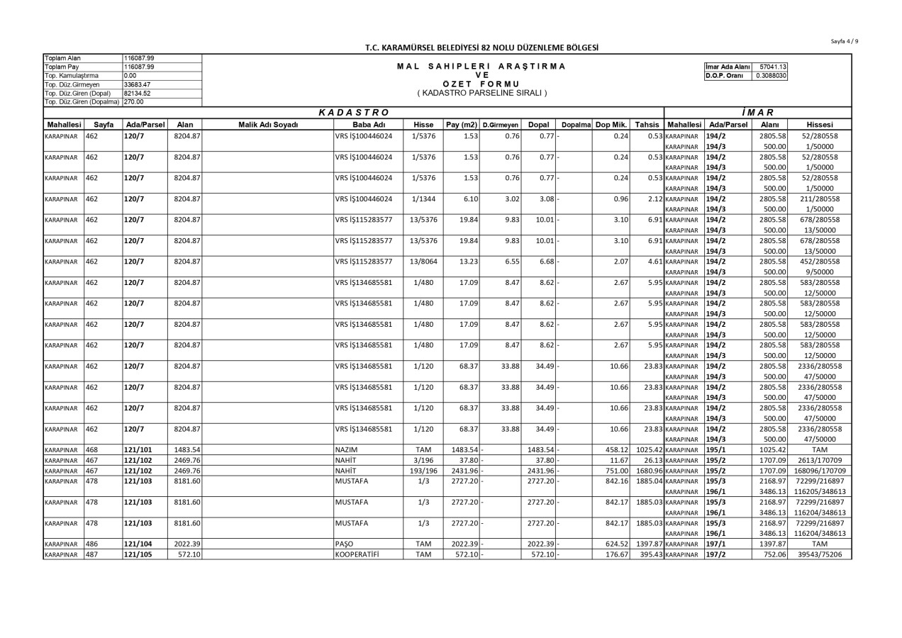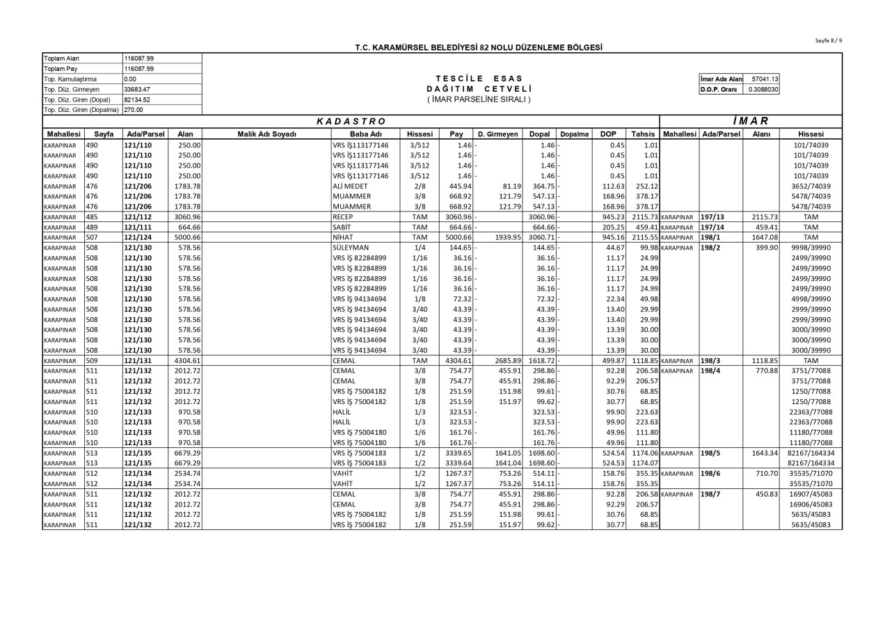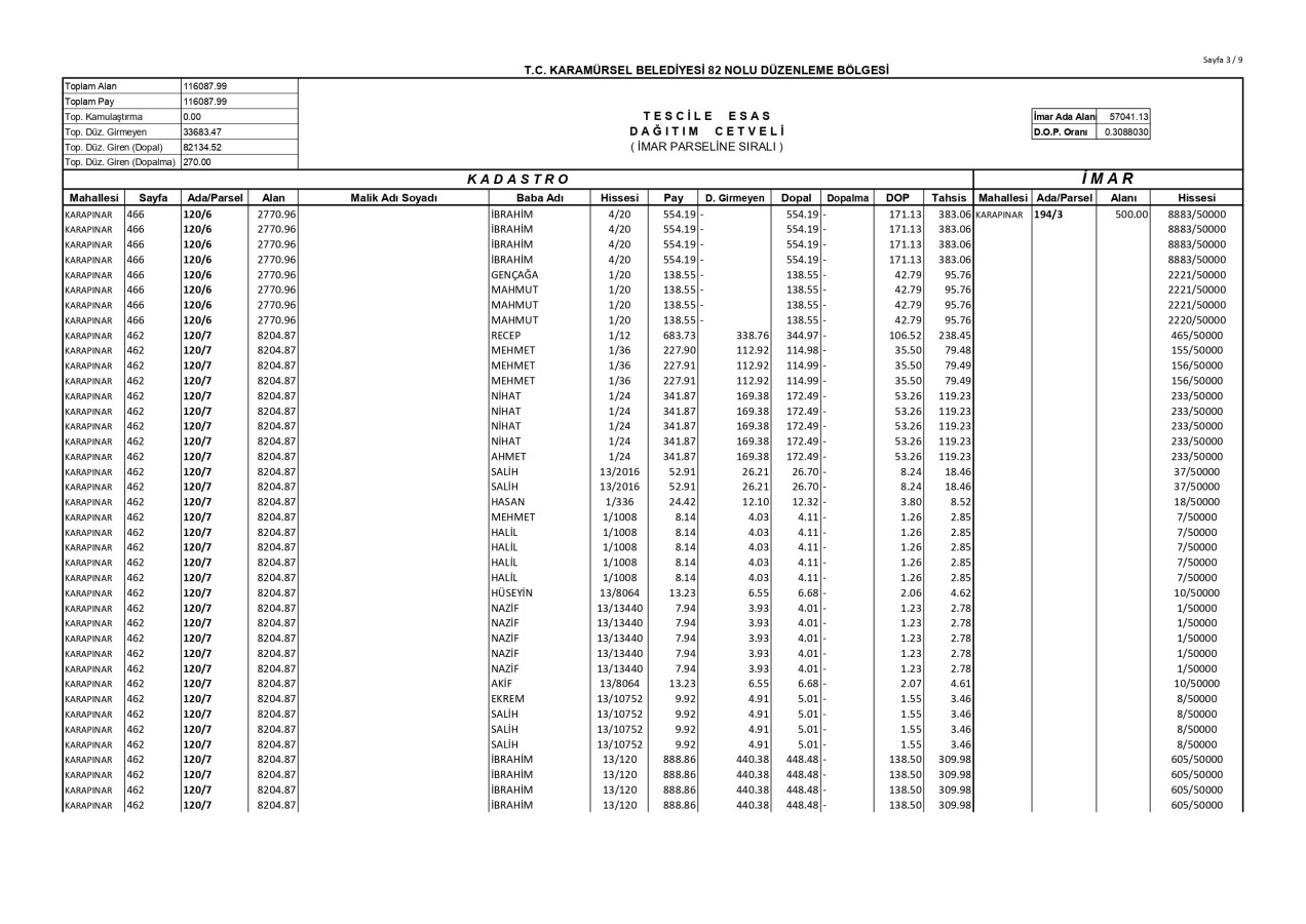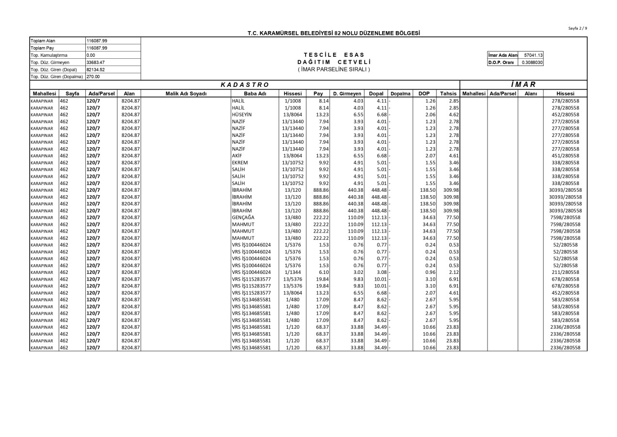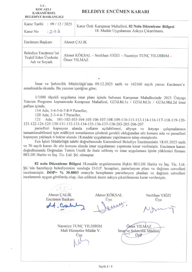 İmar Uygulaması İlanı. ( Karapınar Mah. 82. Bölge )