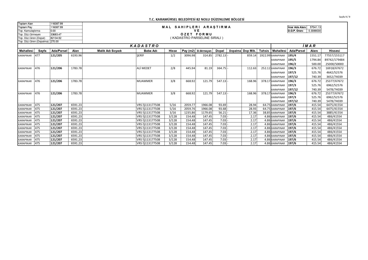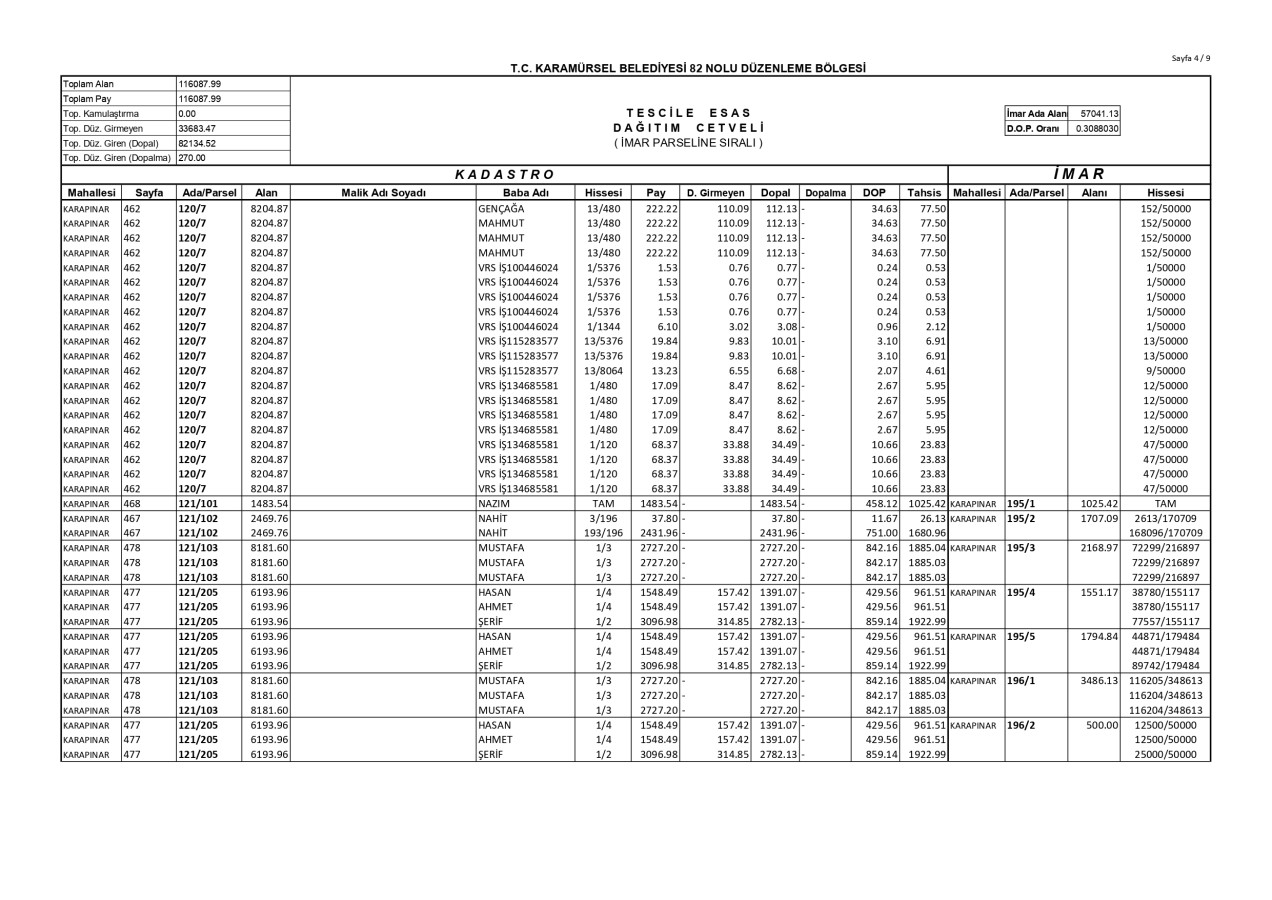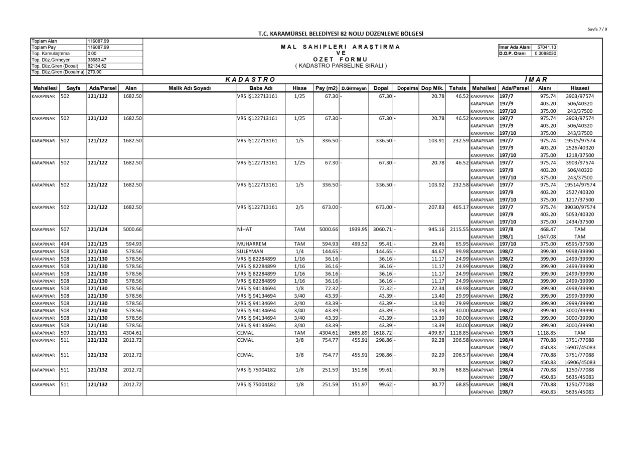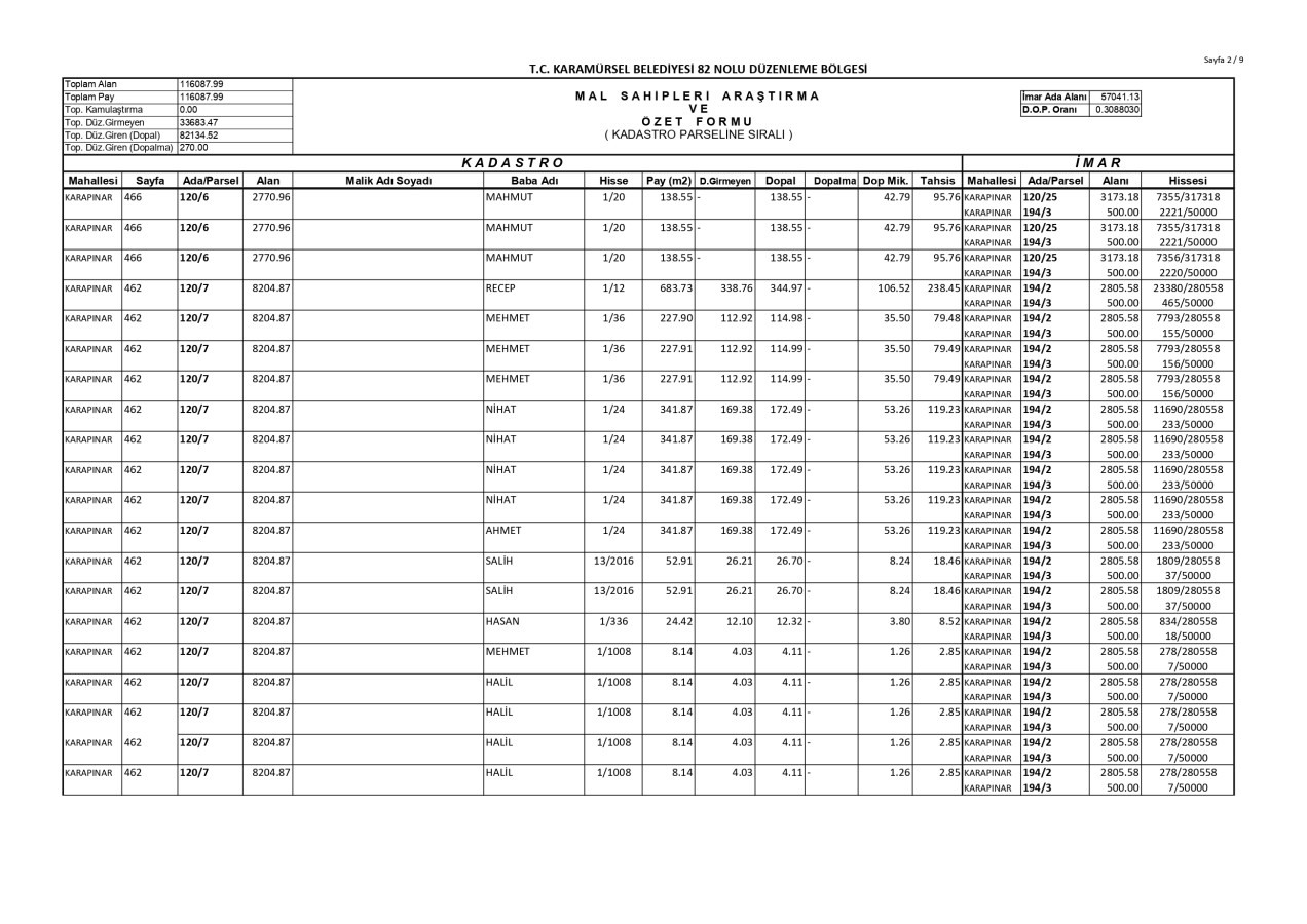 İmar Uygulaması İlanı. ( Karapınar Mah. 82. Bölge )