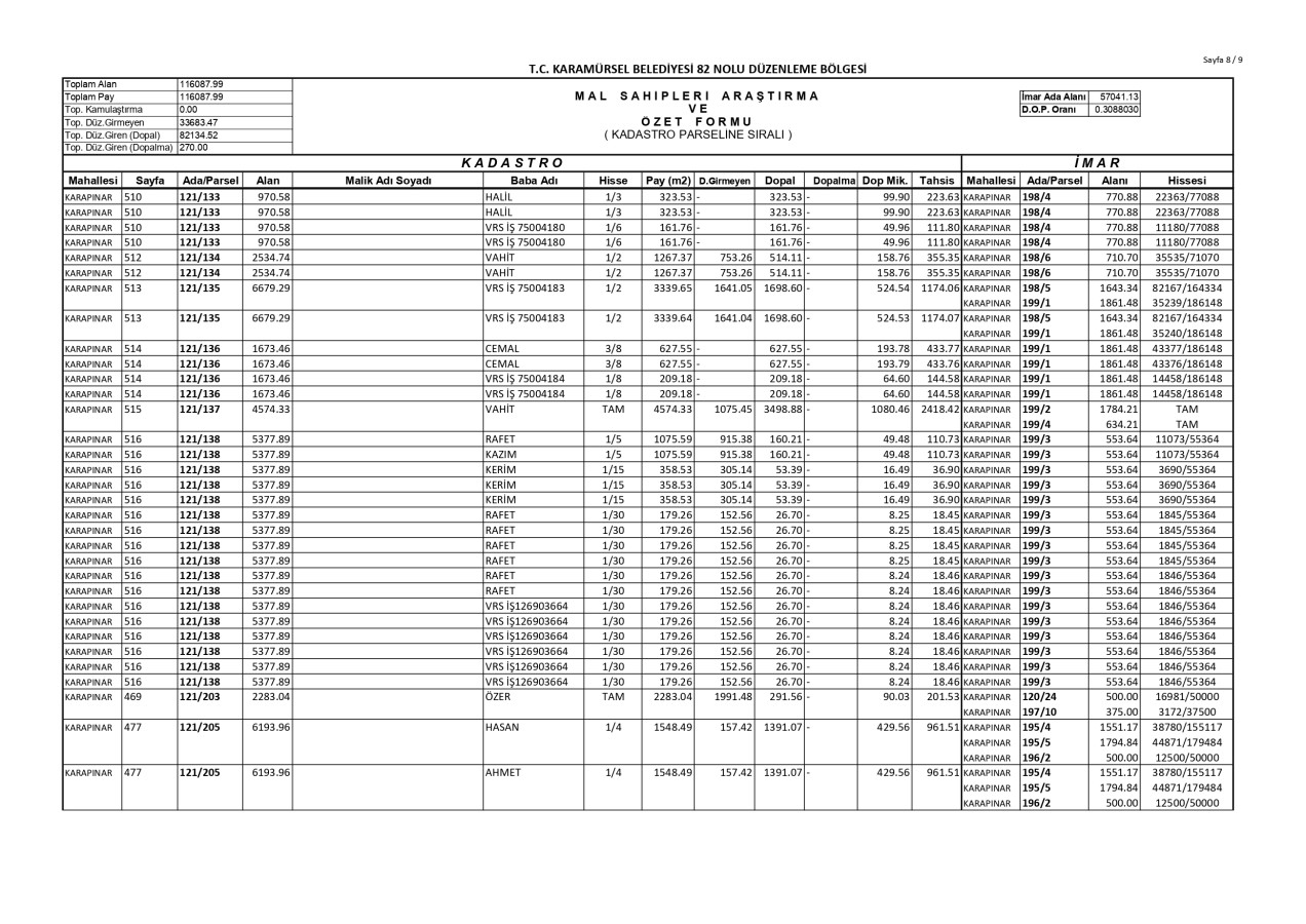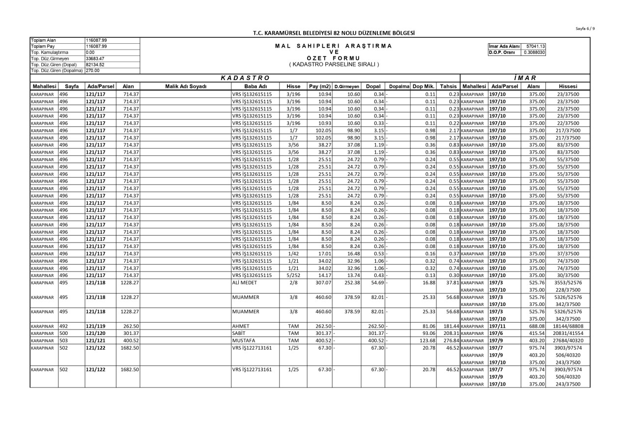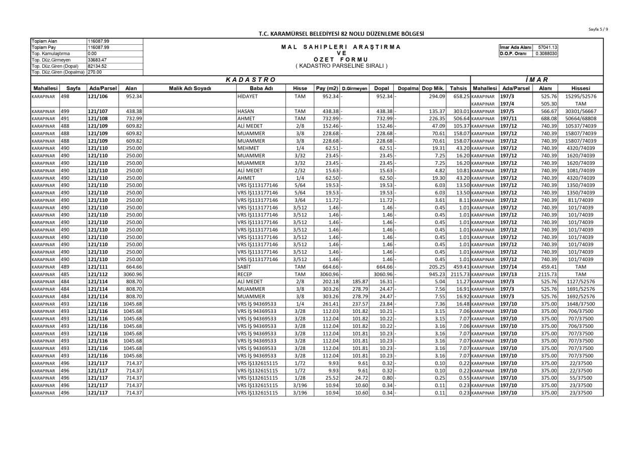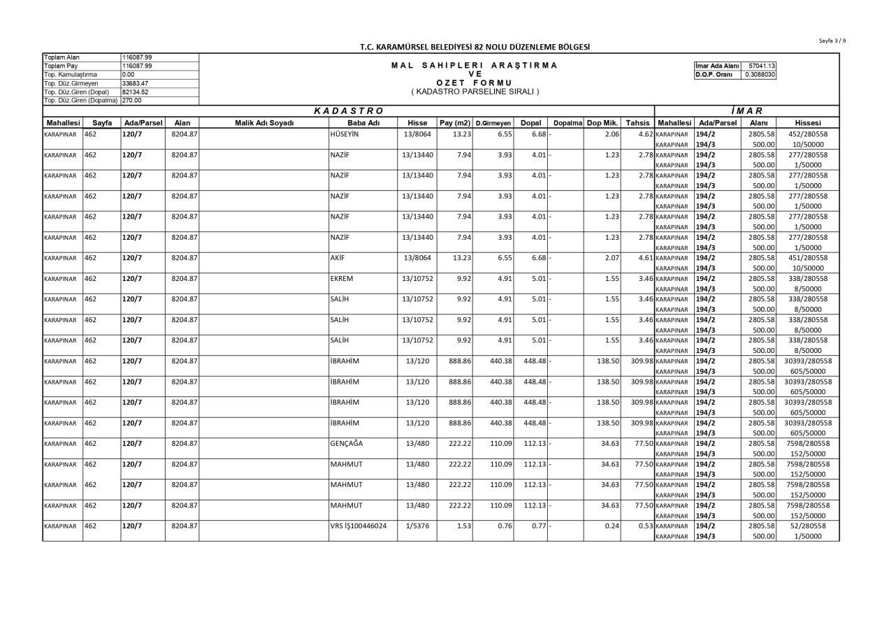 İmar Uygulaması İlanı. ( Karapınar Mah. 82. Bölge )