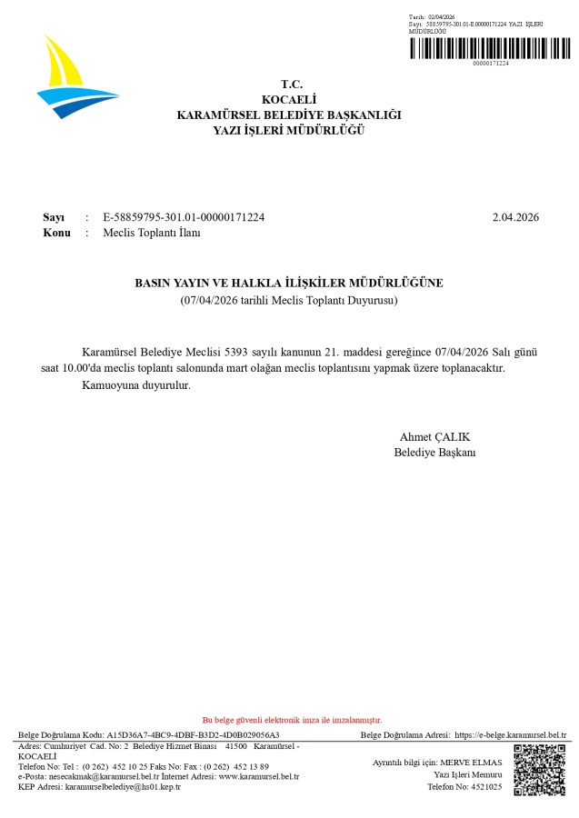 Meclis Toplantı İlanı NİSAN