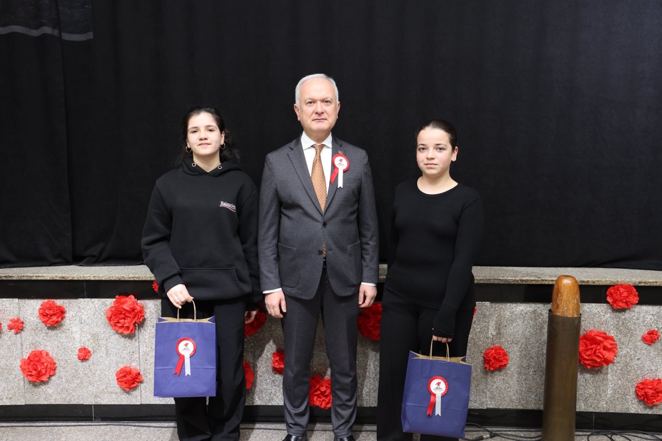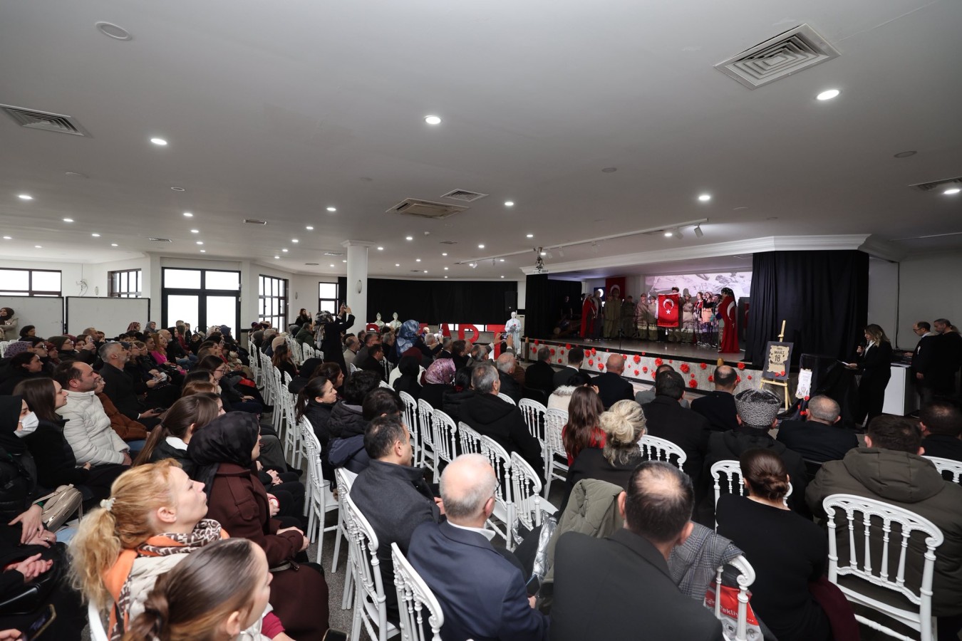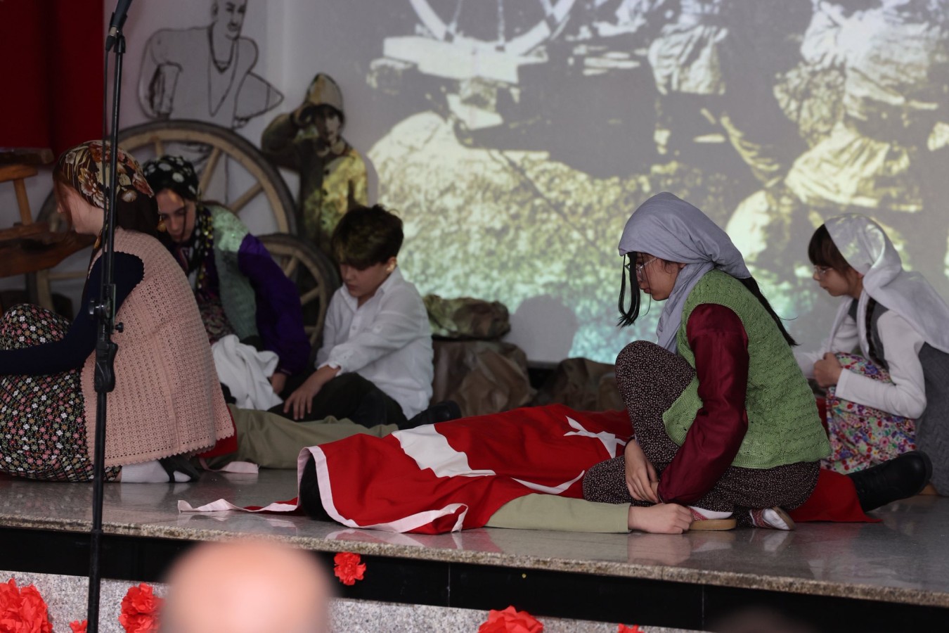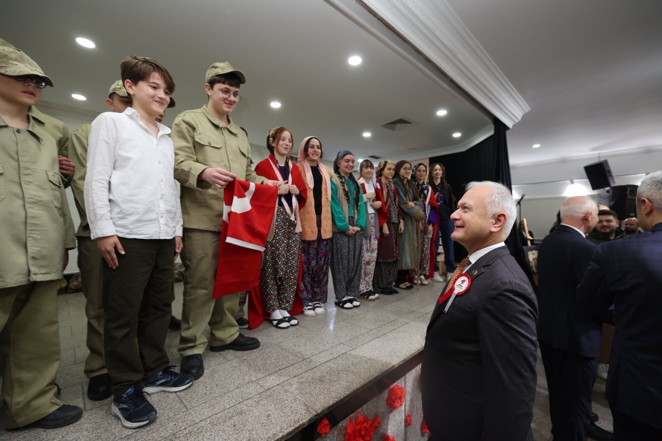 Program, öğrenciler tarafından sahnelenen “Ey Vatan” adlı tiyatro gösterisi ile devam ederken, duygu dolu anlar yaşandı.