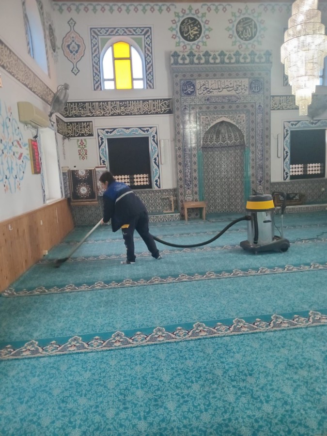 Belediye Temizlik İşleri Müdürlüğü ekipleri, camilerin iç ve dış alanlarında detaylı temizlik uygulamaları gerçekleştirdi. Halılar özenle süpürülüp hijyenik hale getirilirken, camlar, mihrap, minber, kürsü ve ortak kullanım alanları titizlikle temizlendi. Abdesthaneler ve şadırvanlarda da dezenfekte işlemleri yapılarak vatandaşların sağlıklı bir ortamda ibadet etmeleri sağlandı.